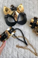 Gold Üstüne Gold Zincirden Hazırlanmış Maske Hariç Deri Sexi Kostüm 700633