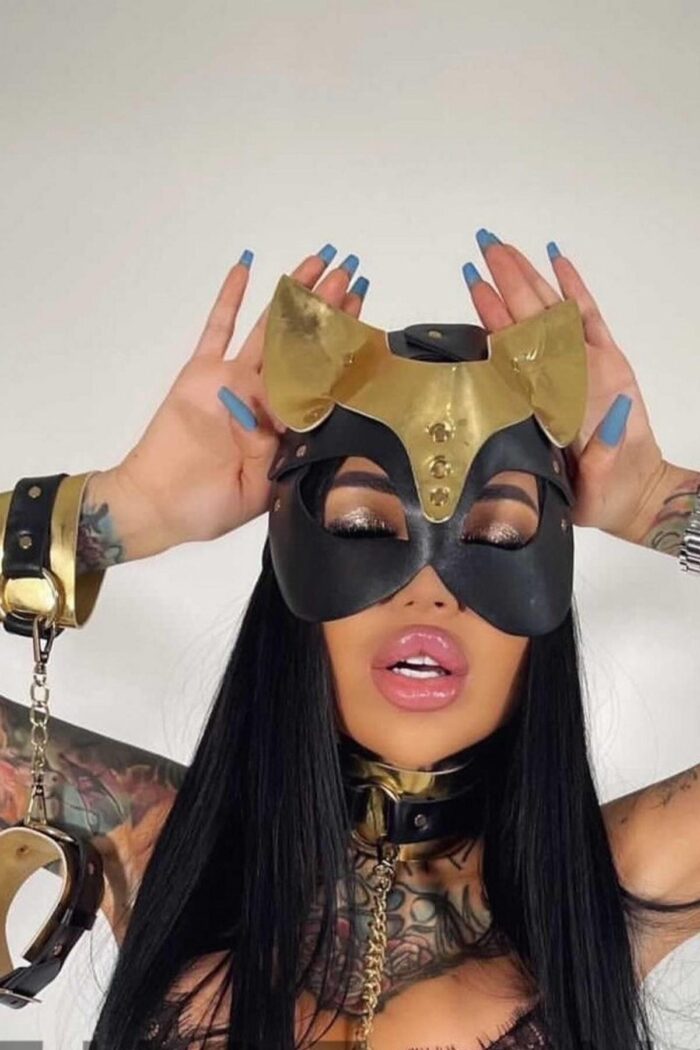 Gold Üstüne Gold Zincirden Hazırlanmış Maske Hariç Deri Sexi Kostüm 700633